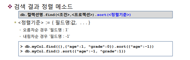 > db.COLLECTION_NAME.find(). sort({KEY:1})