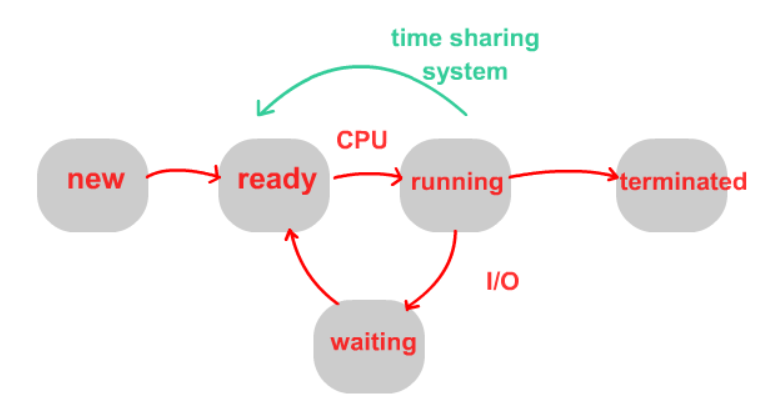 : 일정 시간이 지나면 running 에서 ready 상태로 간다. 이 후 다른 프로세스가 running 상태가 된다.
