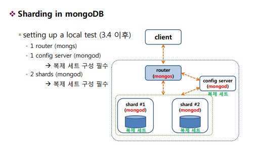 이런 mongos가 위에 나온 Router인데 쉽게 말하면 길을 찾아주는 역할을 한다고 보면 된다.