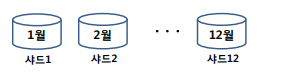 1월 로우들을 한 DB에 2월 로우들을 한 DB에...