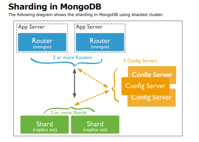 Shards : Sharded data의 일부를 가지고 있고 레플리카 셋으로 구현할 수 있으며 따로따로 구현해 주어야 한다.