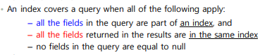 따라서 covered queries를 만들 때는 _id 필드는 반드시 0으로 제외시켜 주어야 한다.