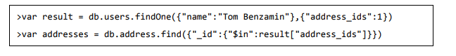 result => {_id:ObjectId("u001"), address_ids" : [ObjectId("a001"), ObjectId("a002")}