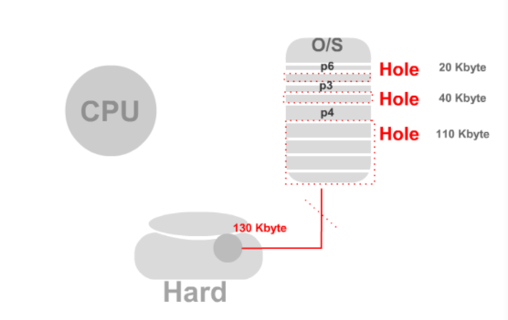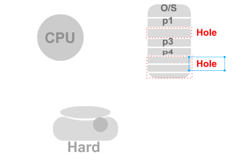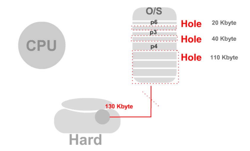 이처럼 프로세스가 생성되고 종료되면서 많은 Hole들이 흩어지게 될 것이다.