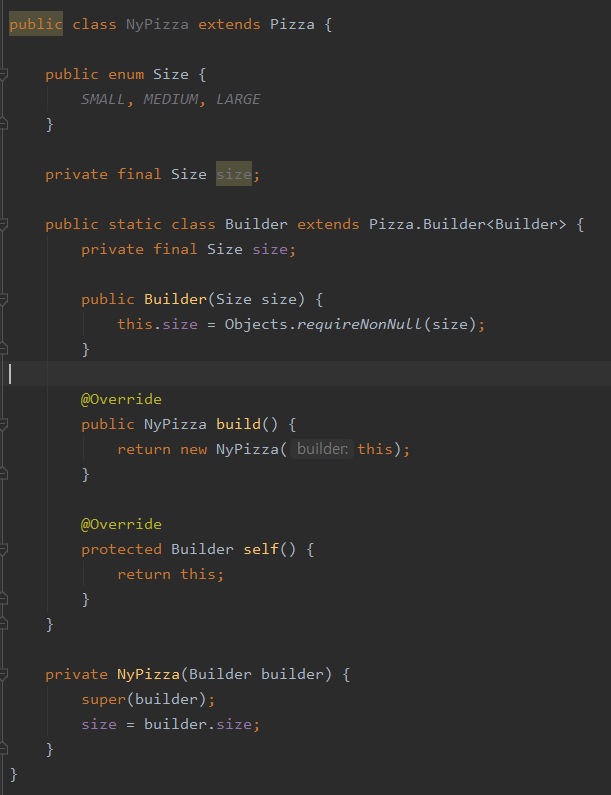 - 이제 Builder가 가지고 있는 size를 NYPizza에 size 건네준다.