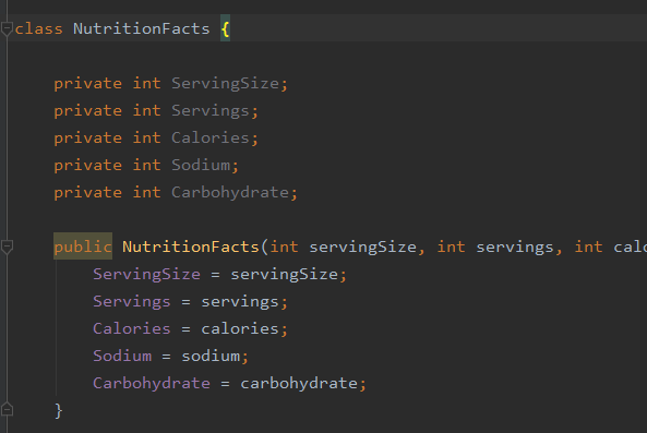 - 그 예가 NutritionFacts인데 해당 클래스를 한번 봐보자.