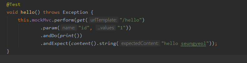 이와 같은 응답은 "hello seungyeol" 이 나와야 할 것이다.