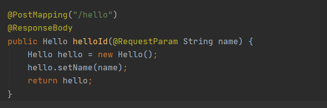 - post요청으로 "/hello"로 가게 된다.