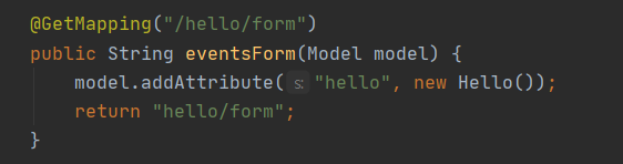 - 모델에 Hello를 담을 Form backing Object를 담아서 뷰로 가게된다.