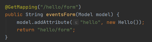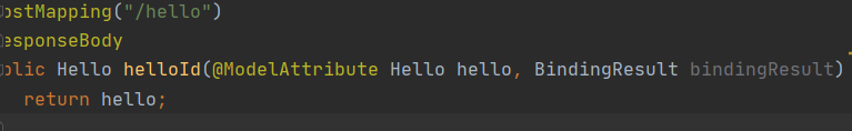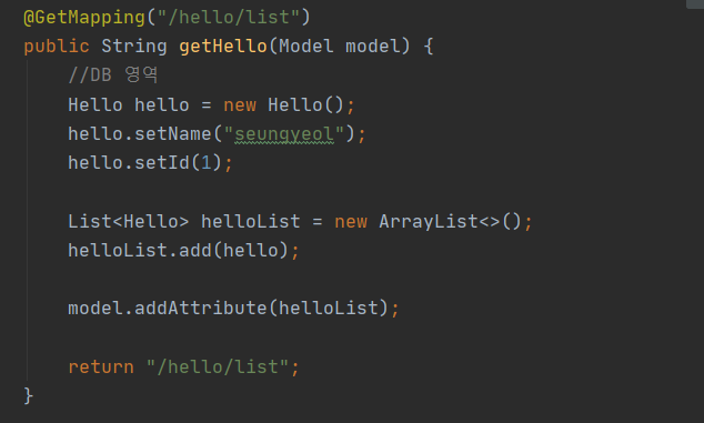 - id와 name 데이터가 담긴 Hello 객체를 바인딩받아오는 것