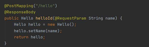 - 따라서 해당 Hello객체의 Integer id와 String name으로 하나하나 받아오는 게 아닌