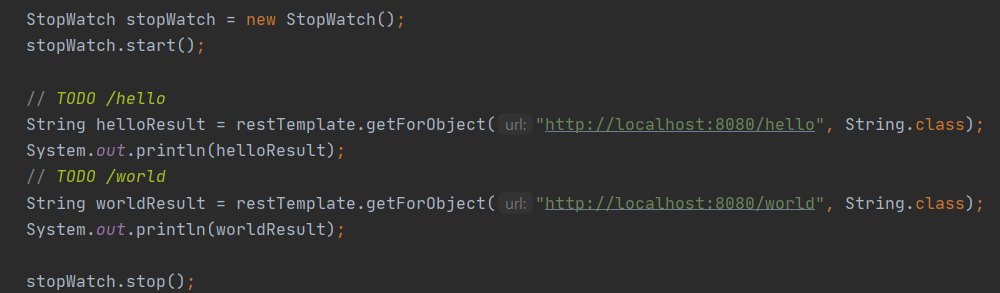 - restTemplate은 Blocking Synchronous I/O이기 때문에 "/hello"를 마친다음에 "/world"를 가게 된다.