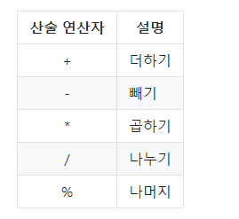 - 수학에서의 산술 연산자에는 사칙연산이 있다.