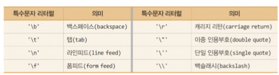 char a = 'a'; - 또 특수문자를 위한 리터럴들도 있다.