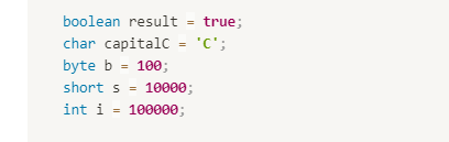- byte, short, int, long, float, double, char, boolean 타입이 그것이다.