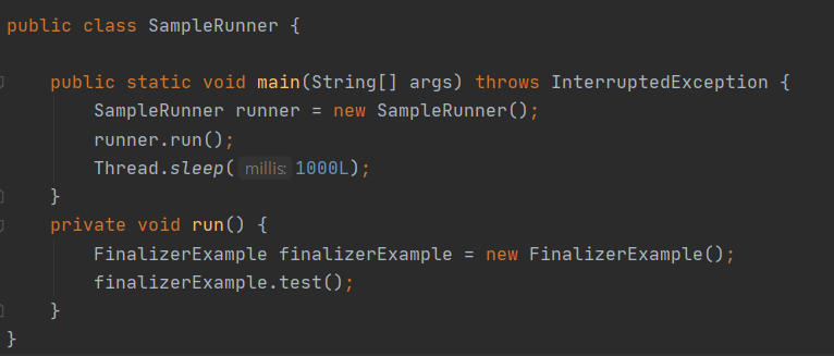 - 다음의 코드는 run() 실행 후 1초 있다가 종료되게 된다.