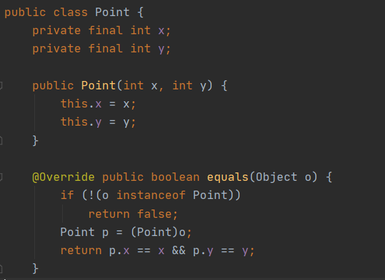 - Point 클래스의 equals를 getClass를 사용해 작성했다면 false를 반환한다.