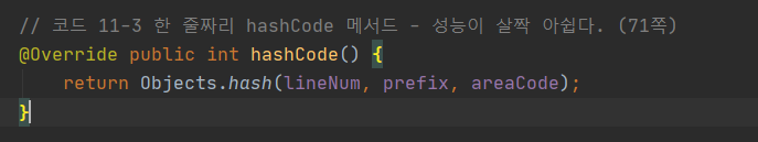 - 그러니 Objects 클래스에 hash 메서드는 성능에 민감하지 않은 상황에서만 사용하자.