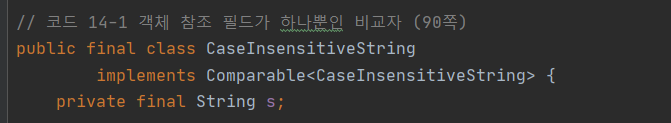 - 이 비교자들을 Comparable 인터페이스가 원하는 compareTo 메서드를 구현하는데 활용할 수 있다.