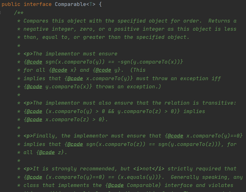 Comparable을 구현한 클래스는 모든 z에 대해 x.compareTo(y) == 0 이면 sgn(x.compareTo(z)) == sgn(y.compareTo(z)) 이다.