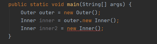 - 오직 비정적인 문맥에서 사용될 때만 바깥 클래스의 인스턴스를 참조할 수 있다.