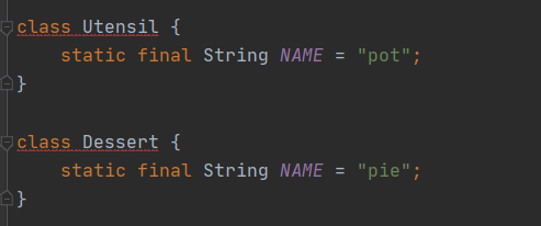 - 단순히 톱레벨 클래스들 ( Utensil과 Dessert )을 서로 다른 소스 파일로 분리하면 그만이다.