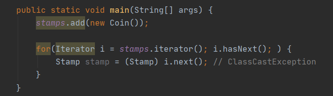 - ClassCastException이 발생하면 stamps에 동전을 넣은 지점을 찾기 위해 코드 전체를 훑어봐야 할 수도 있다.