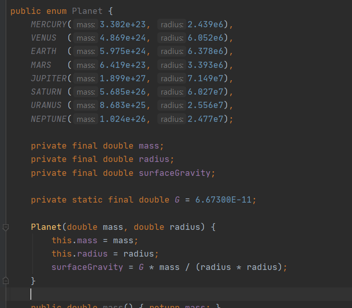 - Planet 상수들은 서로 다른 데이터와 연결되는 데 그쳤지만, 한 걸음 더 나아가 상수마다 동작이 달라져야 하는 상황도 있을 것이다.