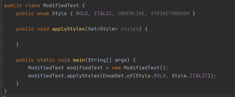 - 다음은 applyStyles 메서드에 EnumSet 인스턴스를 건네는 클라이언트 코드다.