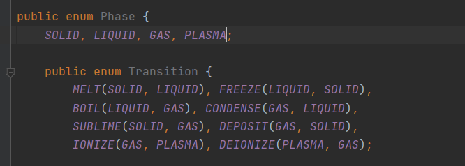 - EnumMap 버전에는 상태 목록에 PLASMA를 추가하고 전이 목록에 IONIZE(GAS, PLASMA)와 DEIONIZE(PLASMA, GAS)만 추가하면 끝이다.