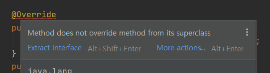 - @Override는 클래스 뿐 아니라 인터페이스의 메서드를 재정의할 때도 사용할 수 있다.