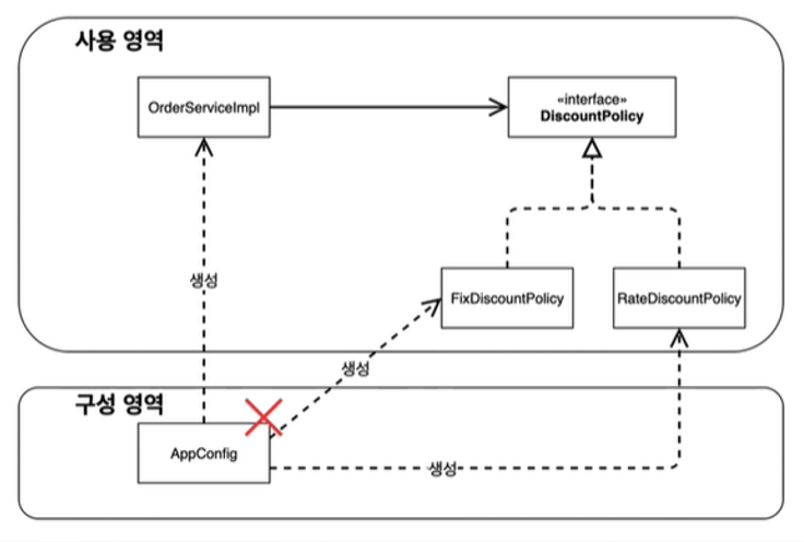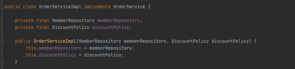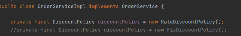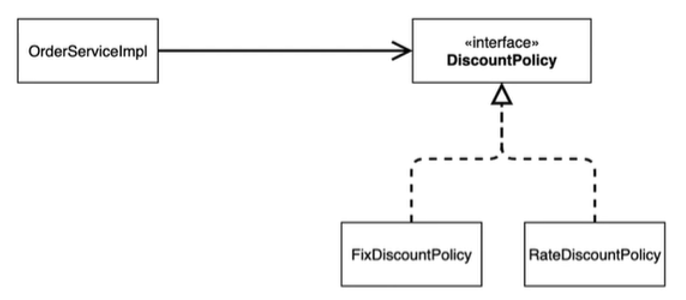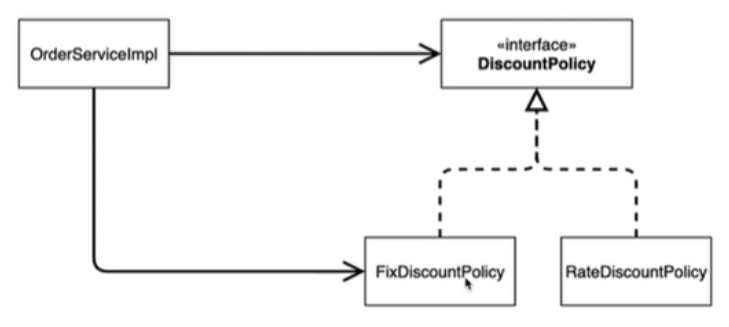 - 생각해보면 OrderServiceImpl은 orderService와 관련된 일만 해야 하는데 FixDiscountPolicy로 굉장히 구체적인 것까지 선택하고 있었다